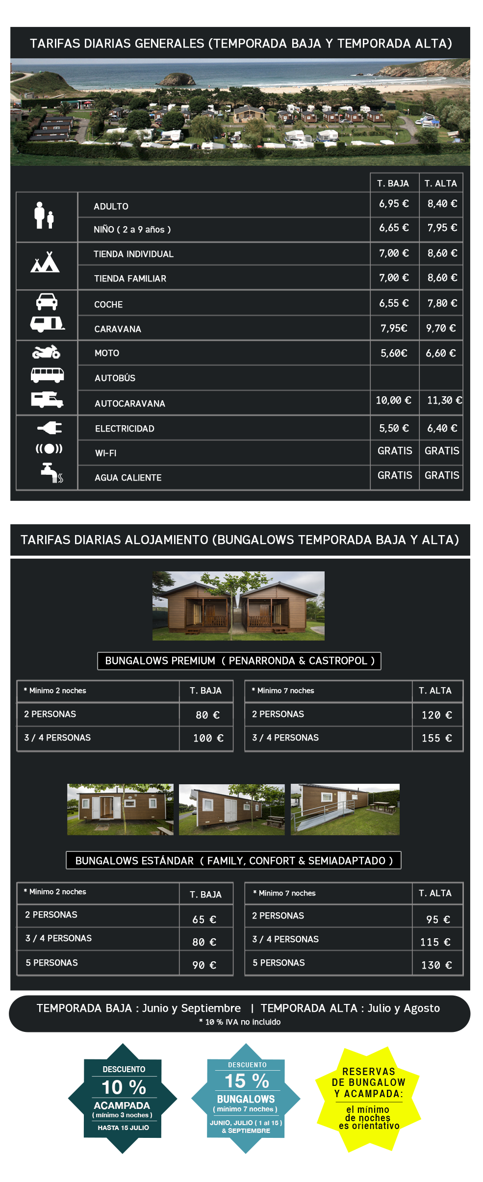 RESERVAS: En caso de anulación, la dirección del camping, y faltados menos de 15 días, podrá retener el 50% del anticipo y si faltan menos de 7 días la totalidad del mismo.