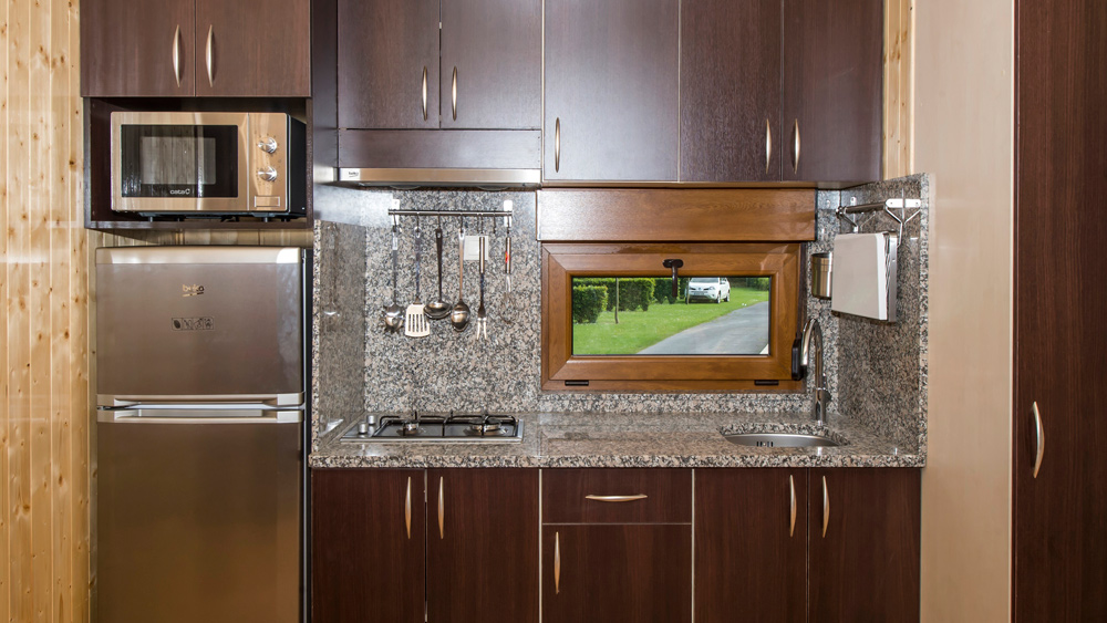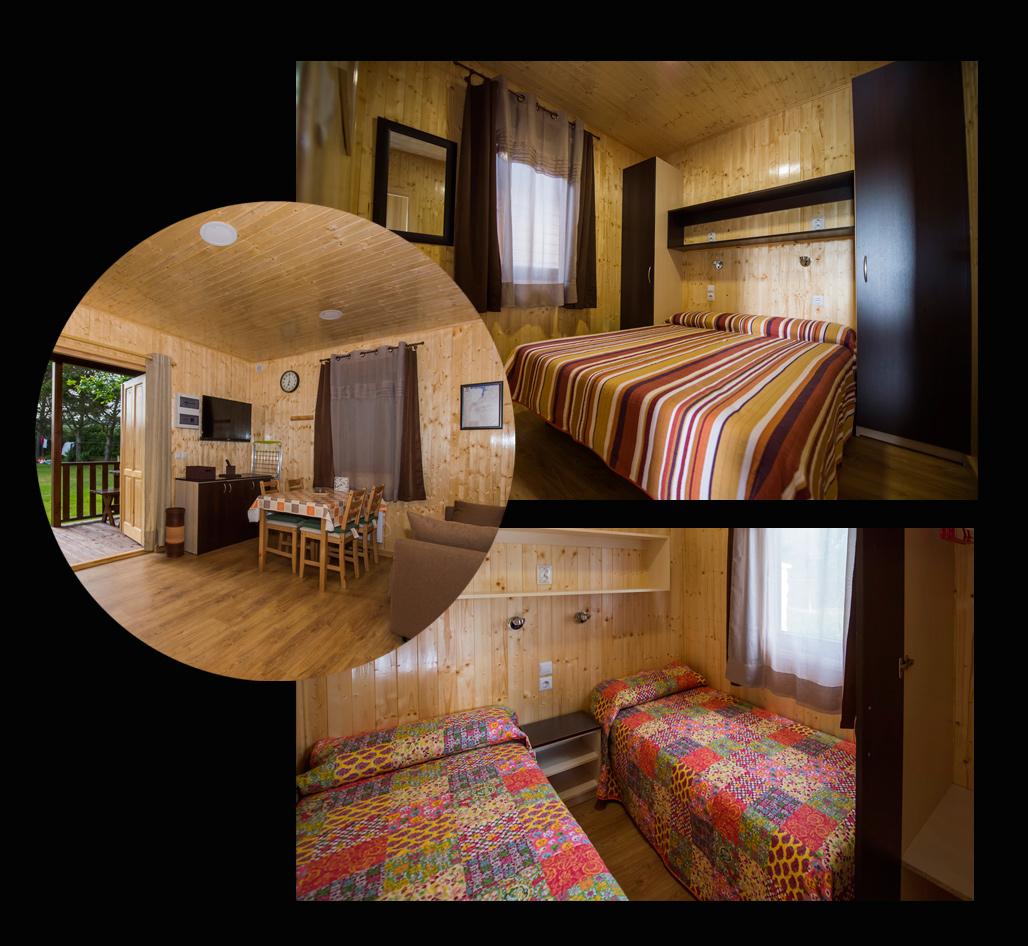 Excelentes BUNGALOWS PREMIUM espaciosos y luminosos perfectamente equipados para 2, 3 y 4 personas / 42,5 m2 con porche de madera / Recién instalados / Calidad superior.